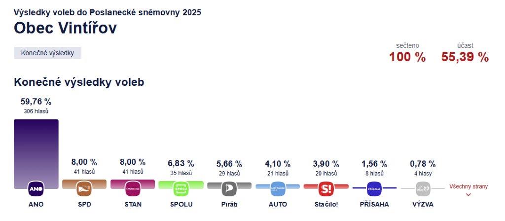 Výsledky voleb do Poslanecké sněmovny Parlamentu České republiky - Vintířov
