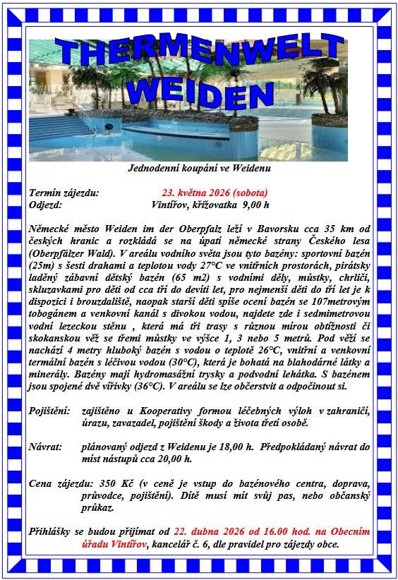Copyright © 2026 Obec Vintířov | Zájezd - Weiden | web: